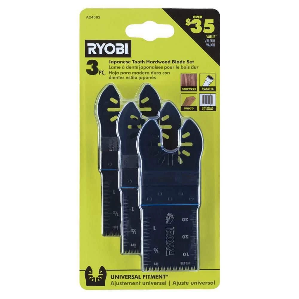 RYOBI introduces the 3-Piece Japanese Tooth Blade Set. These blades provide precise clean cuts optimized for hardwood . Compatible with most oscillating multi-tools. This set is an ideal solution for DIY and pro projects. The set includes (3) Japanese Tooth Hardwood Blades and is a consumable item.