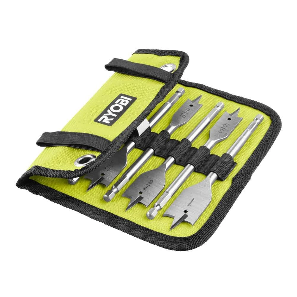 RYOBI introduces the 10-Piece Wood Spade Bit Set. This set is perfect for wood drilling applications. The spade bits feature a 1/4 in. hex shank that is compatible with all drills and impact drivers. Providing up to 3X faster drilling, this set is equipped will all your projects needs. It includes a storage mat for additional organization on and off the job site. The double wing spurs on the spade bits provide easy hole formation and prevents break out. This assortment is perfect for all of your projects including wood surfaces. This set is a consumable item and includes (1) 1/4 in. spade bit, (1) 3/8 in. spade bit, (1) 1/2 in. spade bit, (1) 9/16 in. spade bit, (1) 5/8 in. spade bit, (1) 11/16 in. spade bit, (1) 3/4 in. spade bit, (1) 13/16 in. spade bit, (1) 7/8 in. spade bit, and (1) 1 in. spade bit.