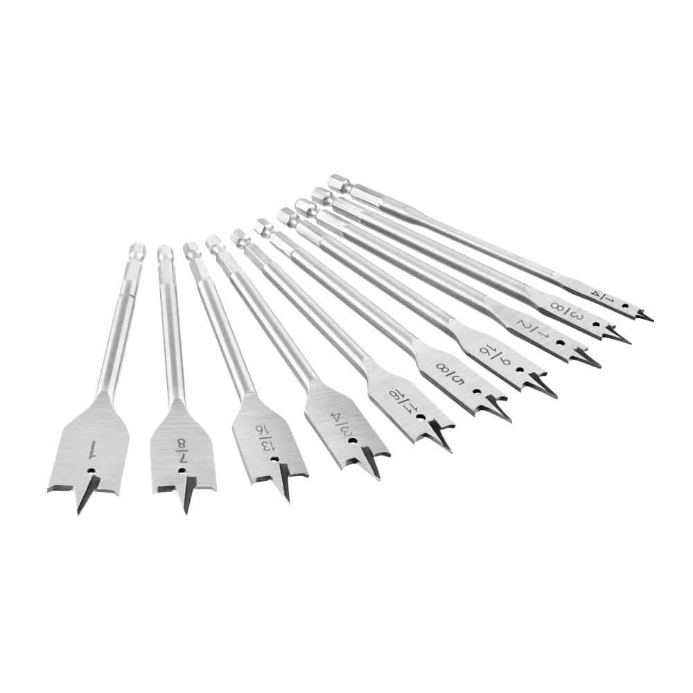 - Includes: A971001 1/4 in. spade bit, 3/8 in. spade bit, 1/2 in. spade bit, 9/16 in. spade bit, 5/8 in. spade bit, 11/16 in. spade bit, 3/4 in. spade bit, 13/16 in. spade bit, 7/8 in. spade bit, 1 in. spade bit