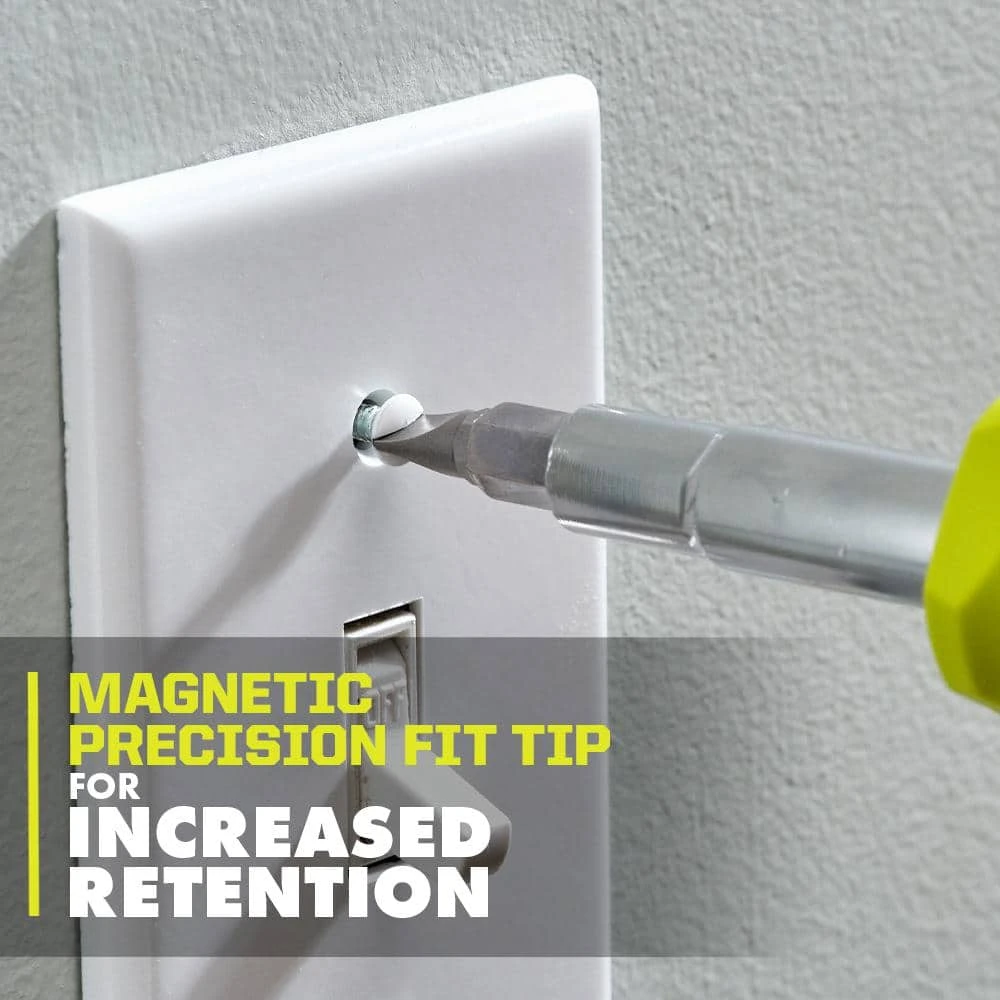 The RYOBI 11-in-1 Multi-Bit Screwdriver is designed with some the most common bits and nut drivers needed. The magnetic tip hold increases fastener retention. The tip identifier and anti-roll design aid in easy identification and keeping the screwdriver in place. Included is (1) Handle, (1) PH1, (1) PH2, (1) SL-1/4 in., (1) SL-3/16, (1) SQ1, (1) SQ2, (1) T10, (1) T15, (1) HEX 5/16 in., (1) HEX 3/8 in., (1) HEX 1/4 in.