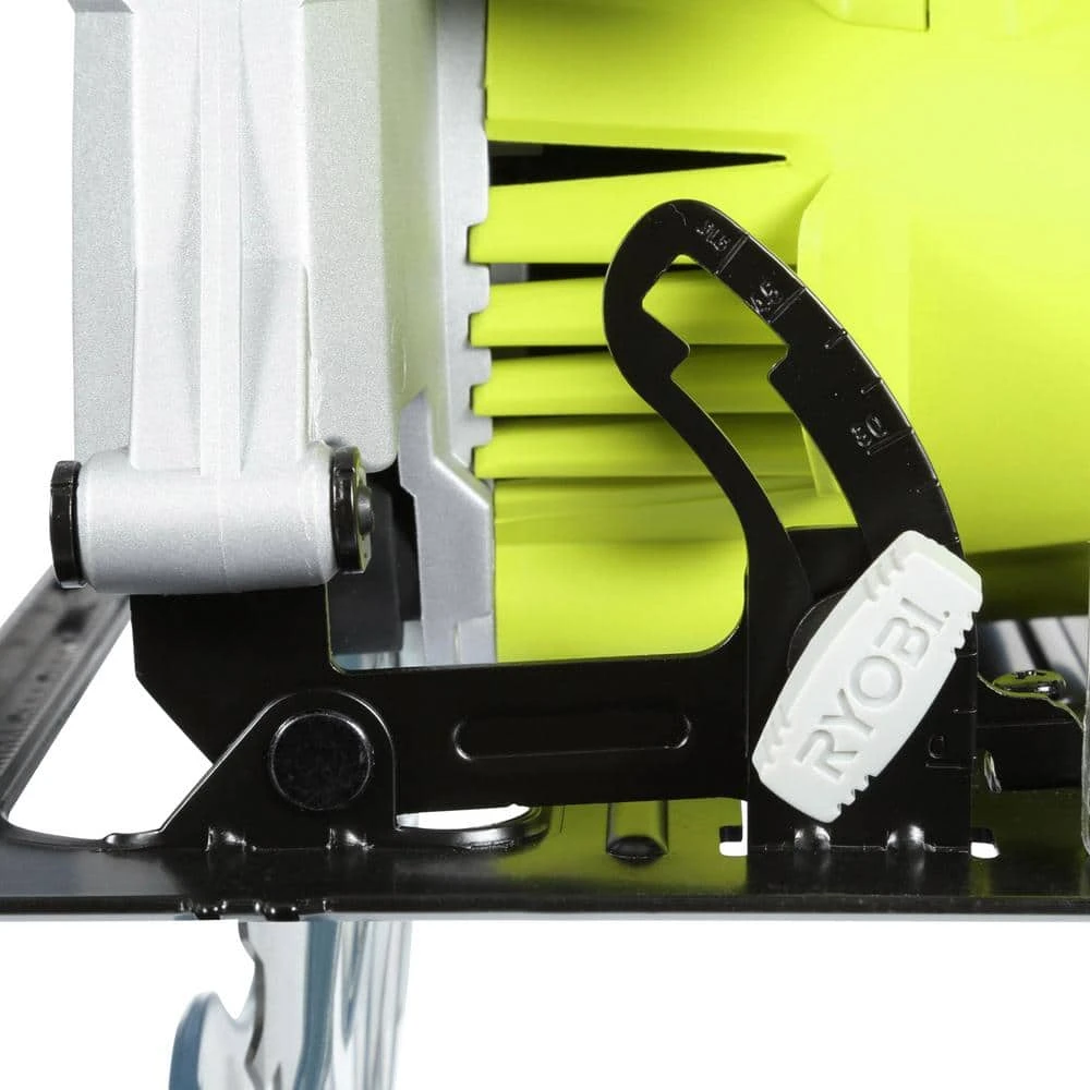 RYOBI introduces the 13 Amp 7-1/4 in. Circular Saw. The powerful RYOBI 7-1/4 in. Circular Saw comes equipped with a contoured design and front pommel handle for added comfort and grip. With a 13 Amp motor and 20 tooth steel blade, this saw is ready for any job. With a 2-7/16 in. depth of cut at 0 degree , 1-7/8 in. depth of cut at 45 degree and 1-11/16 in. depth of cut at 51.5 degree . The RYOBI Circular Saw has an on-board wrench storage as well as adjustable depth of cut with scale for quick reference to improve user accuracy and convenience. Backed by the RYOBI 3-Year Manufacturer’s Warranty, the 13 Amp 7-1/4 in. Circular Saw includes a 20-tooth steel blade, a blade wrench, and an operator’s manual.
