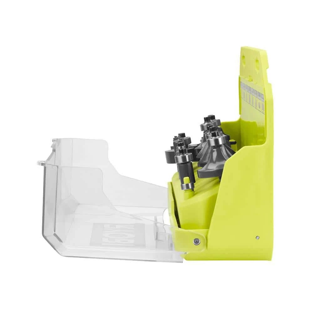 RYOBI introdues the 24-Piece Router Bit Set with 15-Piece Shank Carbide Router Bit Set. The RYOBI 24-Piece Router Bits are ideal for decorative trimming, edging, and joining. 1/4 in. Shank compatible with all corded and cordless routers. Carbide tipped for a longer cutting life and ultra-fine finish. This set is a consumable item and includes (1) Panel Pilot Bit 1/4 in., (1) Keyhole Bit 3/8 in., (1) Roman Ogee Bit R5/32 in., (1) Round Nose Bit 1/4 in., (2) Dovetail Bits 3/8 and 1/2 in., (1) Core Box Bit 1/2 in., (2) Cove Bits R1/4 and R3/8 in., (1) Chamfer Bit 1/2 in., (1) Mortising Bit 1/2 in., (1) Ovolo Bit R1/2 in., (1) Flush Trim 1/2 in., (1) Rabbiting Bit 7/8 in., (1)