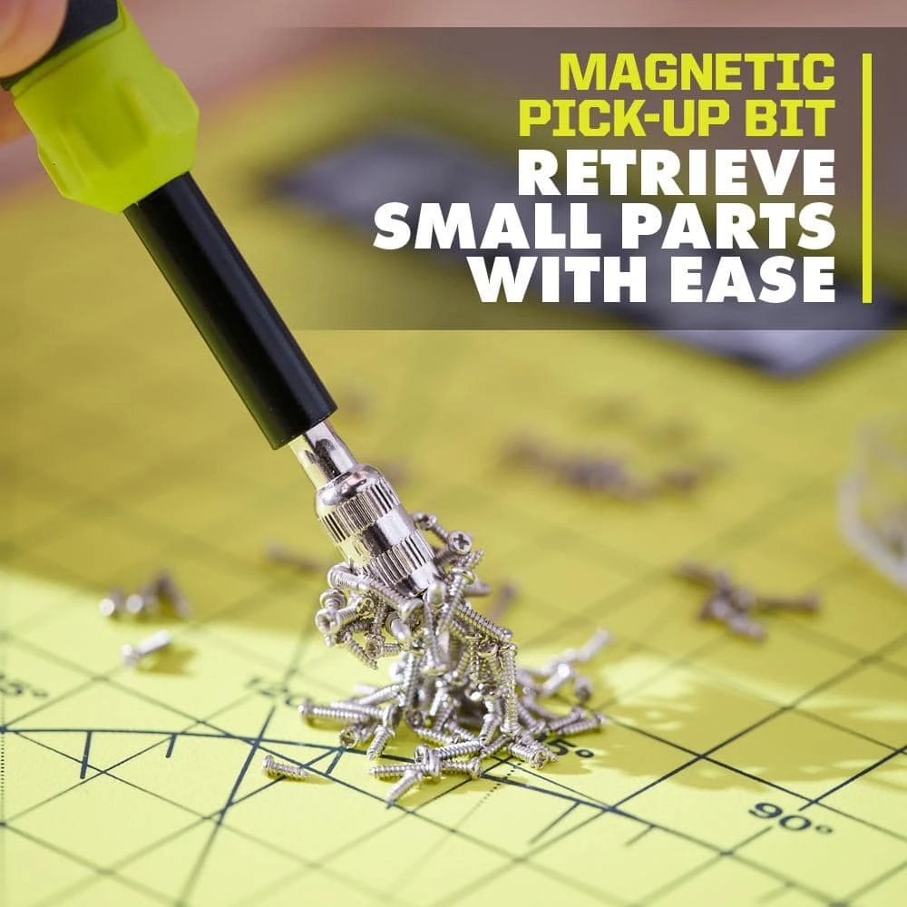 - Included magnetic pick-up bit helps retrieve small parts with ease