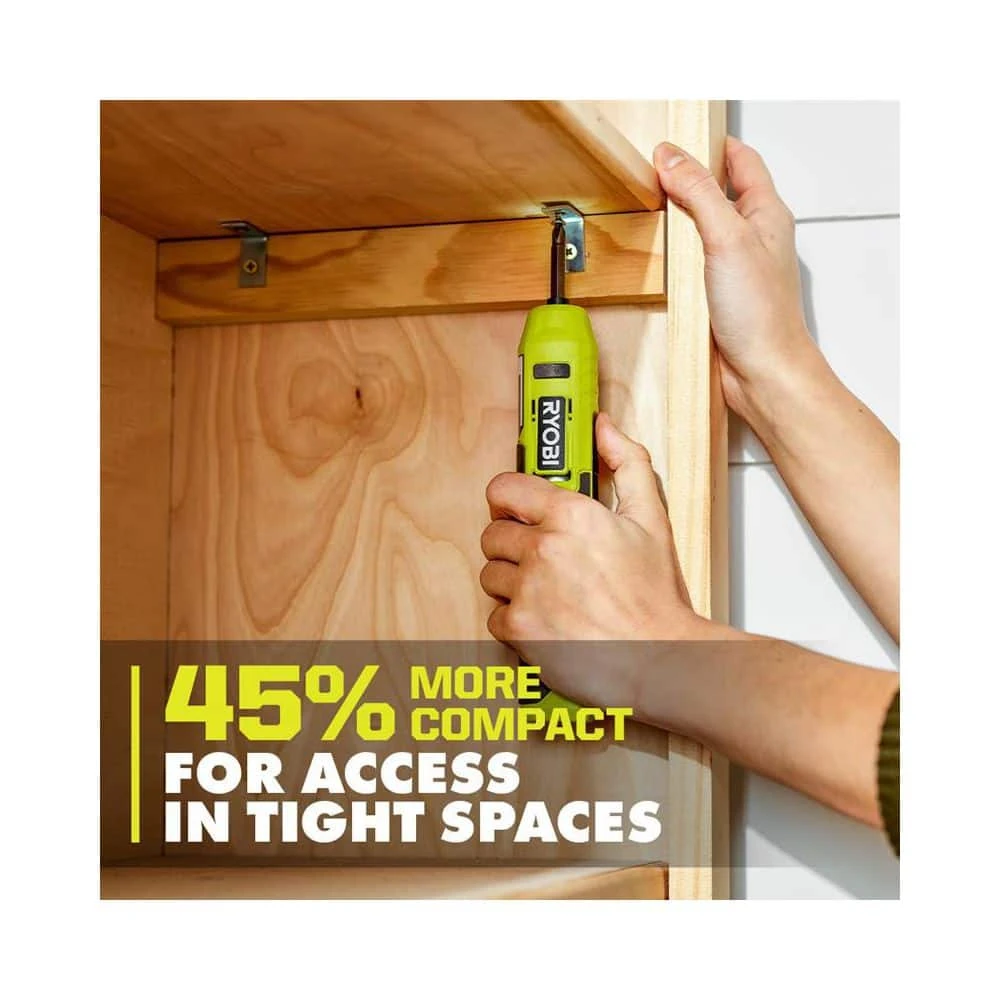 RYOBI introduces the 4V Cordless 1/4 in. Screwdriver with 2 in. Diamond Grit Driving Set (12-Piece). This tool is 45% more compact for greater access in tight spaces when compared to the previous model. The cordless convenience allows portability during every application. Included are a USB charging cable and 2 screw driving bits. This 4V Screwdriver is backed by the RYOBI 2-Year Manufacturer’s Warranty and includes FVD01 Screwdriver, USB Charging Cable, (2) Screwdriver Bits, 2 in. Diamond Grit Driving Set (12-Piece), and Operator’s Manual.