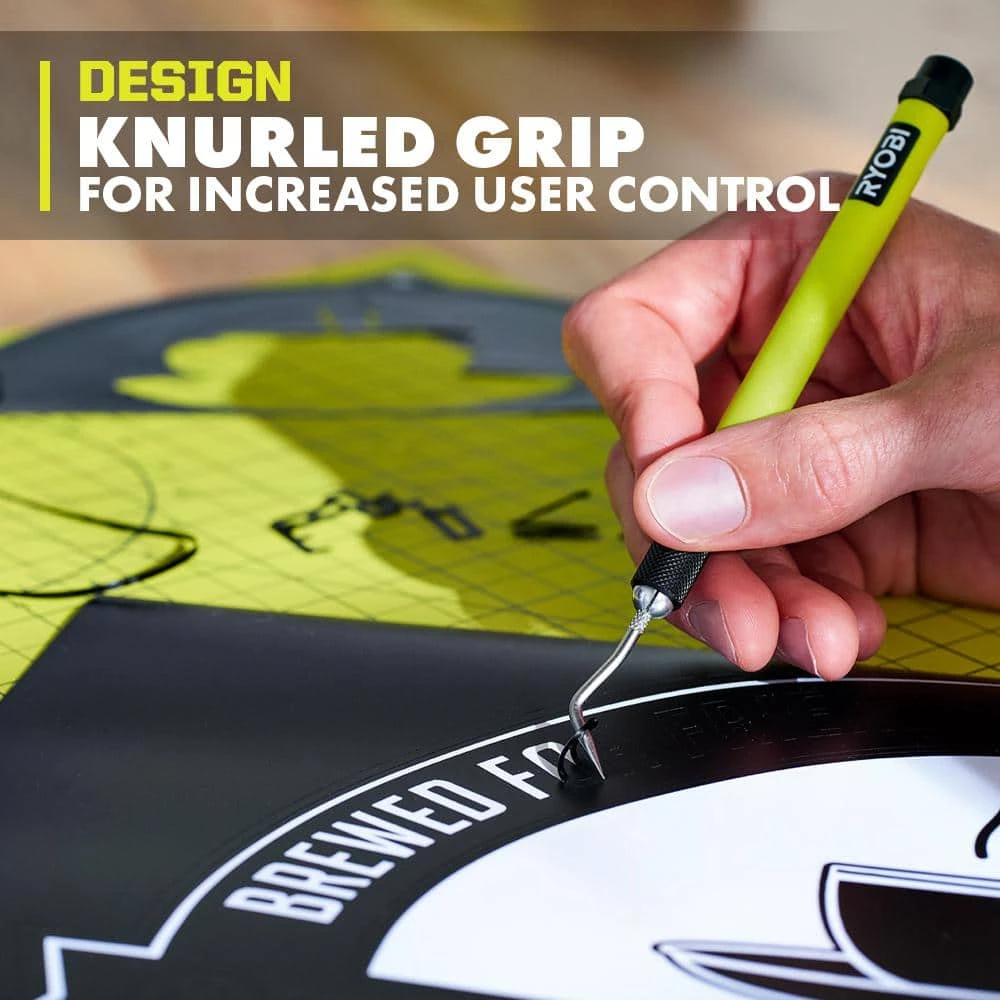 The RYOBI Hook and Pick Set comes with a handle and (4) durable, stainless steel inserts, featuring a hook, spatula, curved pick and a piercing insert, making this tool the ideal solution for lifting, picking, peeling and piercing. The knurled grip provides added user control, while the anti-roll body ensures your tool stays where you left it. The RYOBI Hook and Pick Set is backed by the RYOBI Limited Lifetime Warranty and includes a handle, hook insert, spatula insert, piercing insert and curved pick insert.
