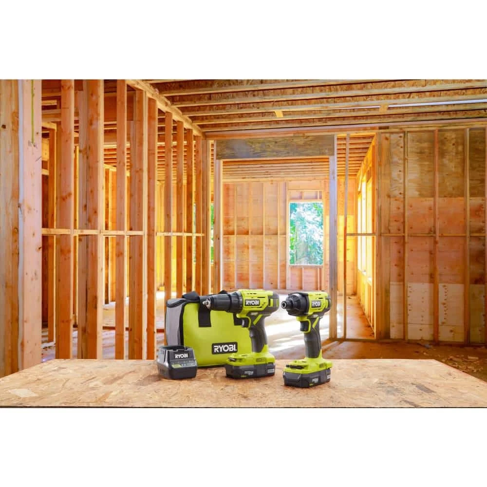 RYOBI introduces the 18V ONE+ 2-Tool Combo Kit with Drill/Driver, Impact Driver, (2) 1.5 Ah Batteries, 18V Charger, and Bag. The ONE+ Drill/Driver features a 1/2 in. heavy duty single sleeve keyless chuck with 24-position clutch to match your drilling and driving needs. The ONE+ Impact Driver features a variable-speed trigger and 1,800 in./lbs. of torque providing control and power when driving long and large screws or bolts. The ONE+ 1.5 Ah Batteries feature lithium-ion cells, providing the user with over 50% more runtime compared to the 18V ONE+ Lithium-Ion 1.3 Ah Compact Battery. Best of all, the is part of the RYOBI ONE+ System of over 300 Cordless Products that all work on the same battery platform. Backed by the RYOBI 3-Year Manufacturer’s Warranty, the 18V ONE+ 2-Tool Combo Kit includes a drill/driver, an impact driver,(2) 1.5 Ah batteries, an 18V charger, and operator’s manuals.