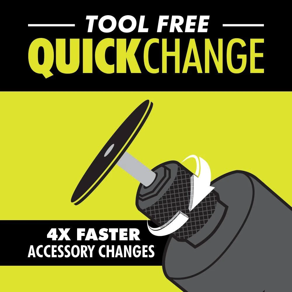 RYOBI introduces the ONE+ HP 18V Brushless Cordless Rotary Tool Kit with 2.0 Ah HIGH PERFORMANCE Battery and Charger. The ONE+ HP Rotary Tool is designed to live up to professional expectations, delivering a powerful solution with longer runtime and 2 times more power under load. The variable speed dial allows users to choose from 1,000 Rated RPM all the way up to 25,000 Rated RPM, helping to ensure maximum precision and accuracy for all applications. The precision hand piece uses a high grade aluminum construction and features the new innovative QuickChange Collet with 4 times faster accessory changes, which makes switching accessories quick and easy. This tool also has foot pedal compatibility, providing unmatched precision and control. The included battery and charger are compatible with all RYOBI 18V ONE+ Tools. The RYOBI 18V ONE+ Magnifying LED Clamp Light is ideal for technicians, inspectors, collectors, hobbyists, crafters, readers, and more. Best of all, it’s a part of the RYOBI ONE+ System of over 300 Cordless Products that all work on the same battery platform. Backed by the RYOBI 3-Year Manufacturer’s Warranty, this Rotary Tool includes a 36 in. flexible shaft, 40 grinding/cutting/sanding/polishing accessories, an accessory storage case, wrench, 18V Magnifying LED Clamp Light, and an operator’s manual.