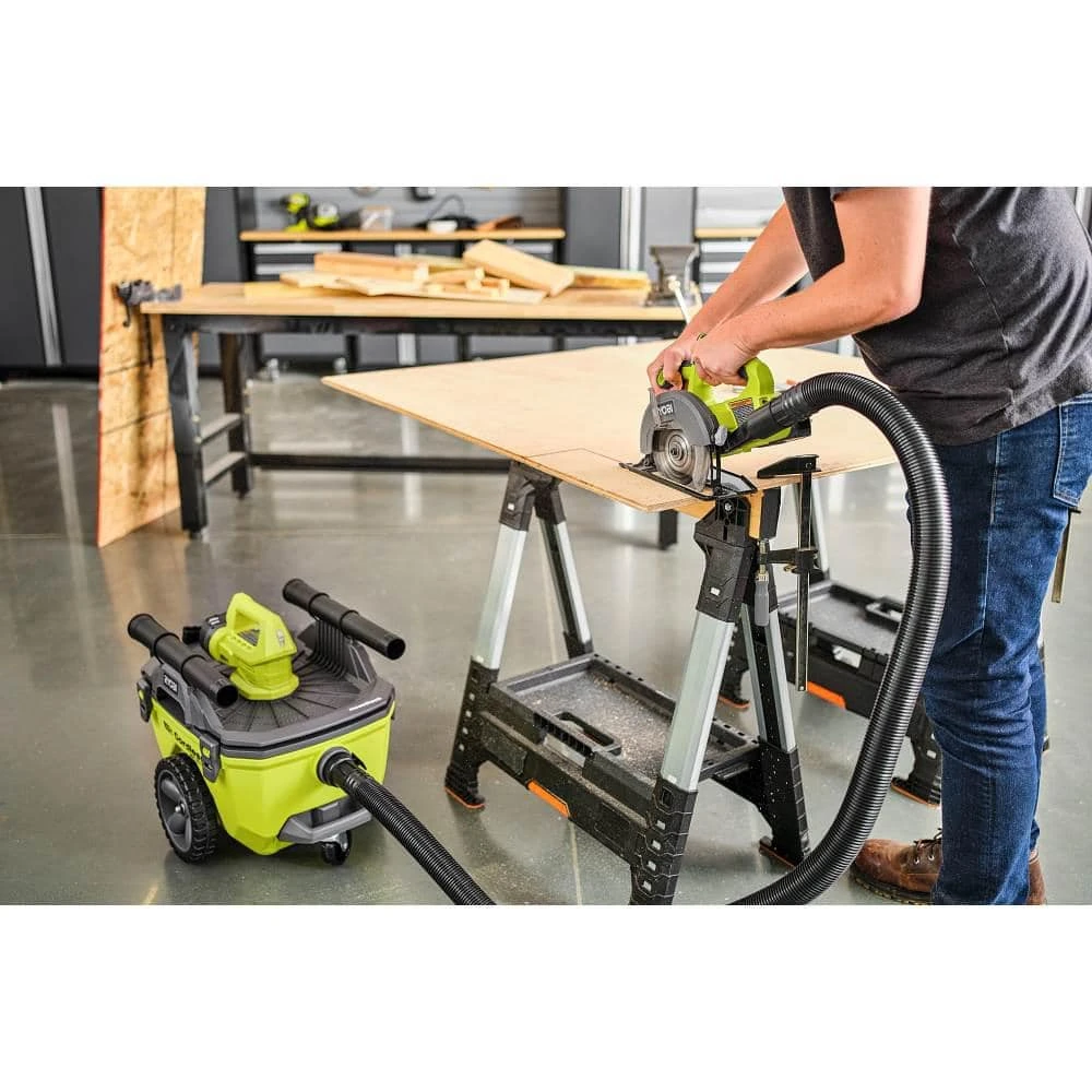 RYOBI introduces the 18V ONE+ Cordless 5-1/2 in. Circular Saw Kit with (1) 4.0 Ah Battery and Charger. Make over 215 fast, clean cuts per charge on the ONE+ Cordless 5 1/2 in. Circular Saw with 4,700 RPM and the included 18T Carbide Tipped Blade. This saw is ideal for cross cuts in 2-by material with 1-11/16 in. maximum depth of cut. Bevel up to 50 degrees to complete a wide variety of cuts and with 1-3/16 in. depth of cut at 45 Degrees of bevel. Purchase the accessory vacuum dust adaptor (sold separately) to connect this saw to your wet/dry vac for quick and easy clean up. The included battery and charger are compatible with all RYOBI 18V Tools. Best of all, it is part of the RYOBI ONE+ System of over 300 Cordless Products that all work on the same battery platform. This 18V ONE+ Cordless 5-1/2 in. Circular Saw is backed by the RYOBI 3-Year Manufacturer’s Warranty and includes a 4.0 Ah Battery, 18V Charger, and operator’s manual.