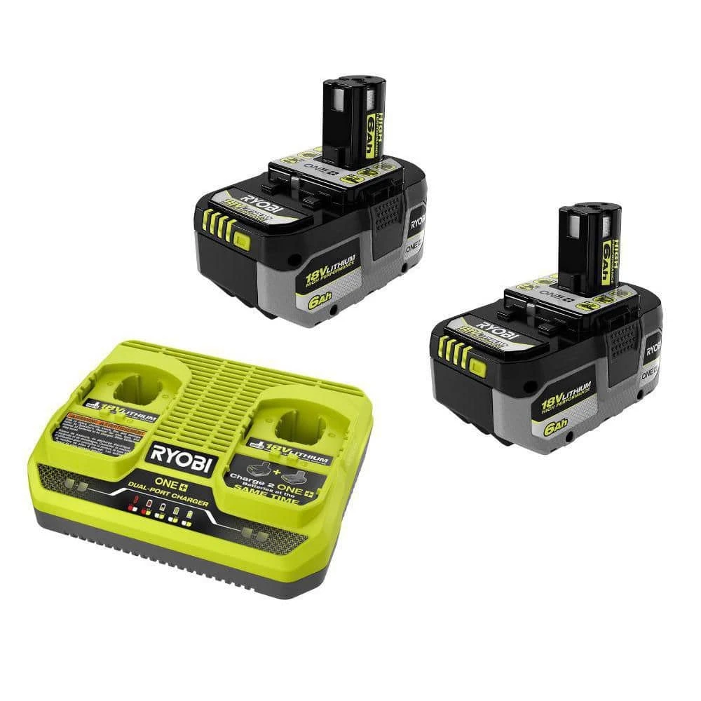 Expand your RYOBI 18V ONE+ System with the RYOBI 18V ONE+ Dual-Port Simultaneous Charger. With 2X faster charging than PCG002, this charger decreases downtime significantly. Ensuring convenience, it is compatible with all RYOBI 18V ONE+ batteries and even allows users to charge two batteries at the same time. Featuring LED indicator lights, users can easily identify battery charge status. The Energy Save Mode conserves energy when not charging or maintaining batteries. To maximize workspace, the wall mount capability ensures organization at any given point. Best of all, it is part of the RYOBI 18V ONE+ System of over 300 Cordless Products that all work on the same battery platform. This 18V ONE+ Dual-Port Simultaneous Charger is backed by the RYOBI 3-Year Manufacturer’s Warranty and includes (1) PCG005 18V ONE+ Dual-Port Simultaneous Charger, (2) 6.0 Ah HIGH PERFORMANCE Batteries, and an operator’s manual.