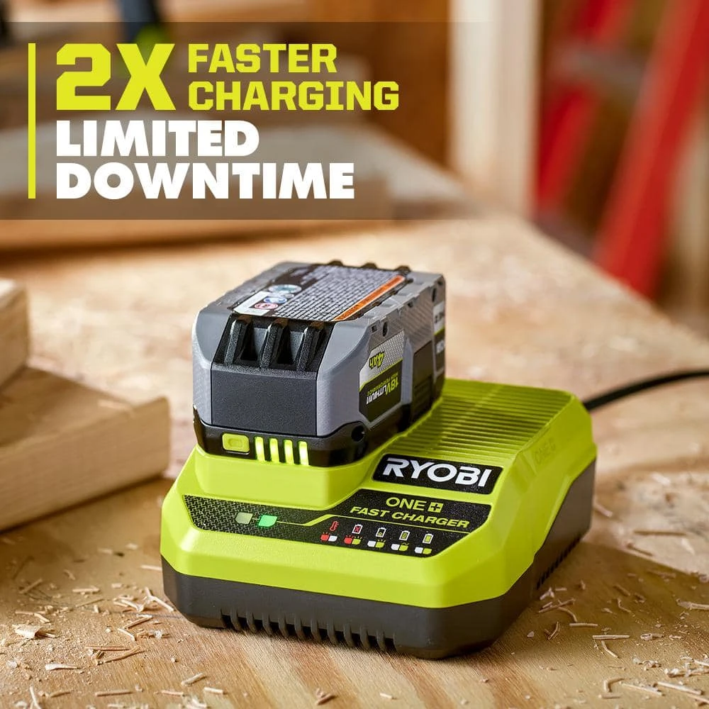 Expand your RYOBI 18V ONE+ System with the RYOBI 18V ONE+ Fast Charger. With 2X faster charging than PCG002, this charger decreases downtime significantly. Featuring LED indicator lights, users can easily identify battery charge status. The Energy Save Mode conserves energy when not charging or maintaining batteries. To maximize workspace, the wall mount capability ensures organization at any given point. Best of all, it is part of the RYOBI 18V ONE+ System of over 300 Cordless Products that all work on the same battery platform. This 18V ONE+ Fast Charger is backed by the RYOBI 3-Year Manufacturer’s Warranty and includes (1) PCG004 18V Fast Charger, (2) 6.0 Ah HIGH PERFORMANCE Batteries, and an operator’s manual.
