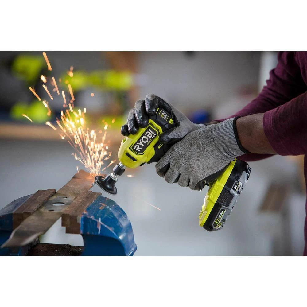 RYOBI introduces the 18V ONE+ Lithium-Ion 4.0 Ah Compact Battery (2-Pack) and Charger Kit with ONE+ HP Brushless Die Grinder. This RYOBI 18V ONE+ Lithium-Ion 4.0 Ah Battery (2-Pack) and Charger Kit provides up to 3X more runtime compared to standard 18V lithium-ion batteries. These batteries are compatible with over 300 18V ONE+ products to power through all types of projects. Built with professional grade lithium-ion cells these batteries provide fade free, cord-like power. They are engineered to perform in extreme weather temperatures and are engineered to be impact resistant. They also feature an integrated LED fuel gauge for charge monitoring. The included charger is compatible with all RYOBI 18V ONE+ Lithium-Ion Batteries. The ONE+ HP 18V Compact Brushless 1/4 in. Right Angle Die Grinder is designed to live up to professional expectations, delivering a powerful solution in the most compact and lightweight design. Best of all, it’s a part of the RYOBI ONE+ System of over 300 Cordless Products that all work on the same battery. Backed by the RYOBI 3-Year Manufacturer’s Warranty, this kit includes two 18V ONE+ 4.0 Ah Lithium-Ion Batteries, an 18V Charger, a ONE+ HP 18V Compact Brushless Right Angle Die Grinder with a wrench and operator’s manual.