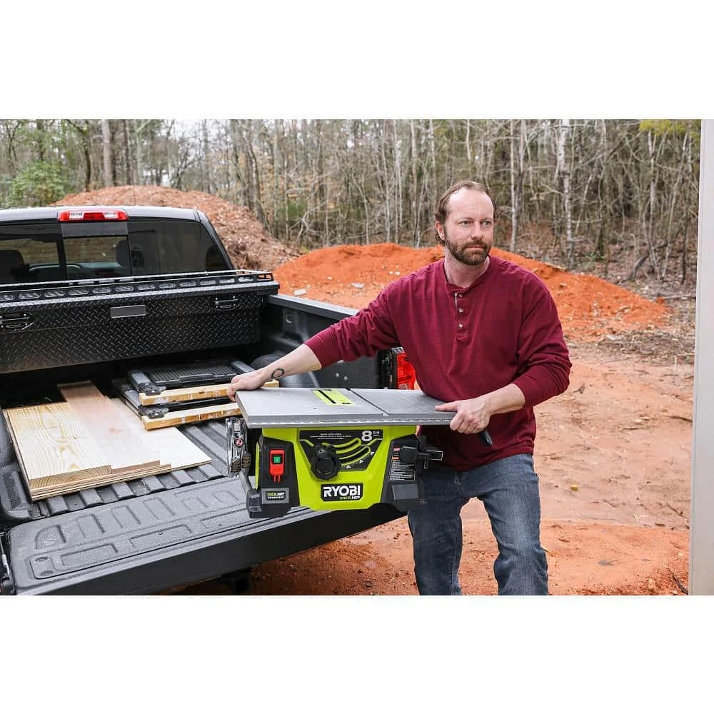 RYOBI introduces the 18V ONE+ HP Brushless Cordless 8-1/4 in. Compact Portable Jobsite Table Saw and Cordless 7-1/4 in. Sliding Compound Miter Saw Kit with (2) 4.0 Ah HIGH PERFORMANCE Batteries, and Charger. ONE+ HP Technology combines a powerful brushless motor, advanced electronics, and HIGH PERFORMANCE lithium-ion batteries to deliver corded cutting performance, with up to 4,500 RPM for controlled and accurate cuts. This Table Saw has a 12 in. rip cut capacity, right of the blade, and the ability to rip up to 240 linear feet per charge, when using (2) 4.0 Ah HIGH PERFORMANCE batteries. Additional features include an adjustable self-aligning material fence, a rack and pinion blade height adjustment to ensure accurate depth control, and a steel frame that provides added durability and strength. Also, enjoy the convenience of integrated on-board storage for all accessories. Best of all, it is part of the RYOBI 18V ONE+ System of over 300 Cordless Products that all work on the same battery platform.This brushless table saw is backed by the RYOBI 3-Year Manufacturer’s Warranty and includes the 18V ONE+ HP brushless 8-1/4 in. table saw, push stick, blade guard assembly with anti-kickback pawls, carbide-tipped blade, rip fence, miter gauge, blade wrenches, 18V ONE+ 7-1/4 in. Sliding Compound Miter Saw, a 40-tooth Carbide Tipped Blade, blade wrench, dust bag, work clamp, two carrying handles, and operator’s manual.