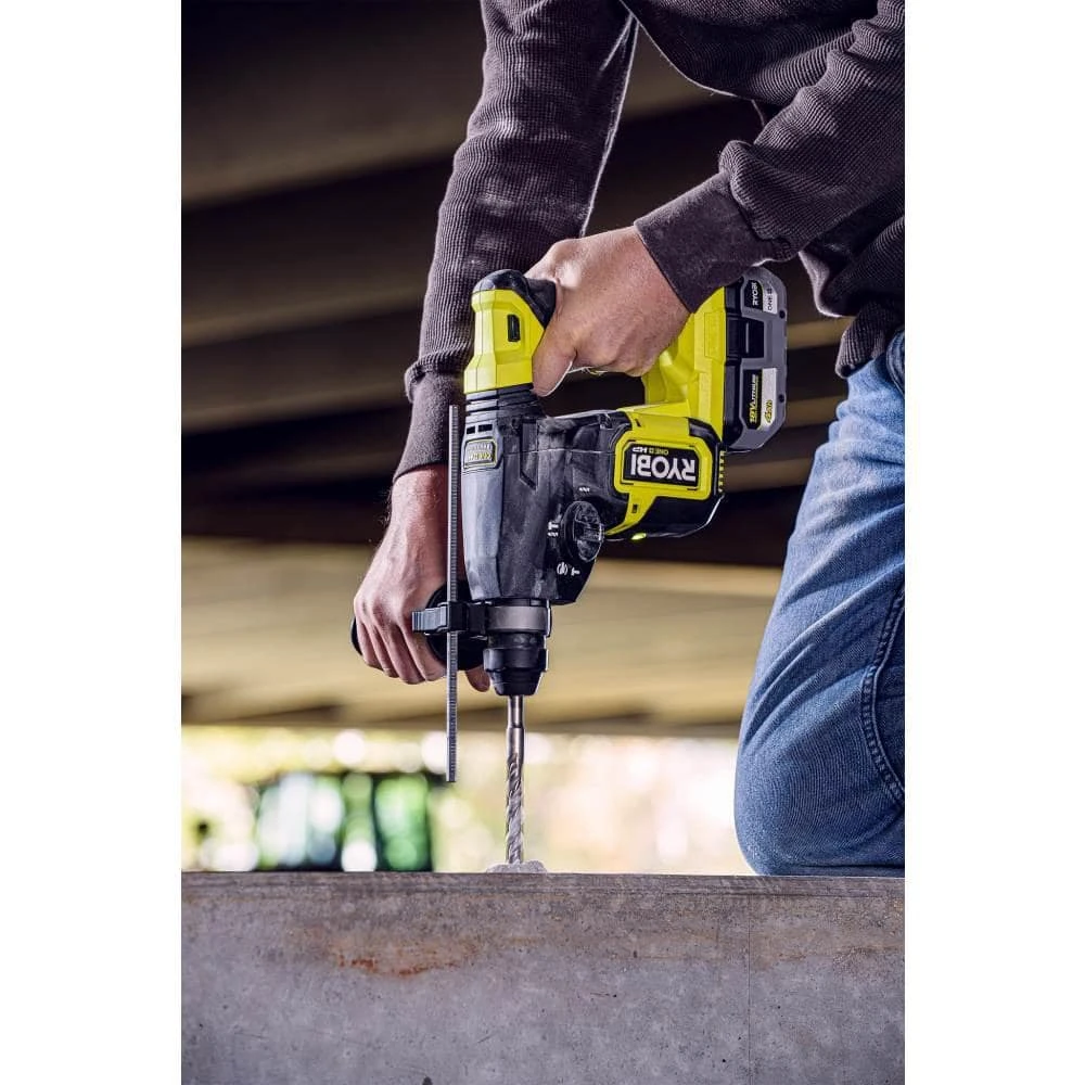 RYOBI introduces the 18V ONE+ HP Brushless Cordless Compact 5/8 in. SDS Rotary Hammer Kit with 2.0 Ah HIGH PERFORMANCE Battery and Charger. ONE+ HP Technology delivers more power, runtime, durability and speed utilizing brushless motors, advanced electronics and high performance lithium technology. Our compact tools are the lightest and smallest we have ever made, while still delivering optimal power to get the job done. Measuring at only 11.4 in. in length, this tool is 43% lighter weight than its full-size model, giving you better access to tight workspaces and overhead applications. With ONE+ HP technology, this tool can deliver up to 6,200 BPM. It also features 2 modes: rotary hammer and drill. The on-board LED worklight creates extra visibility for all your projects needs. Best of all, it is part of the RYOBI ONE+ System of over 300 Cordless Products that all work on the same battery platform. This 18V ONE+ Compact Brushless 5/8 in. SDS-Plus Rotary Hammer is backed by the RYOBI 3-Year Manufacturer’s Warranty and includes (1) PSBRH01 18V ONE+ HP Compact Brushless 5/8 in. SDS-Plus Rotary Hammer, 2.0 Ah HIGH PERFORMANCE Battery, Charger, and operator’s manuals.