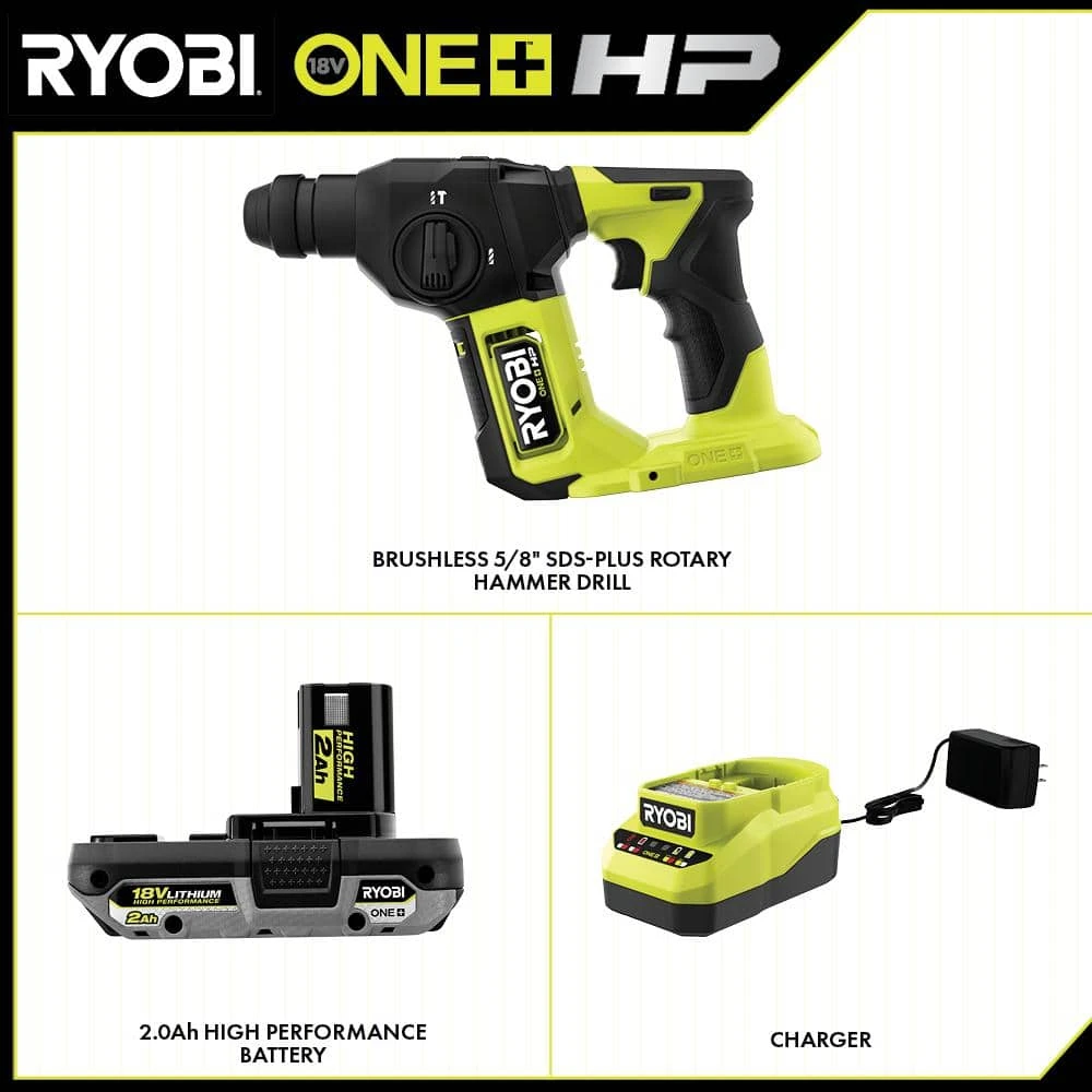 - Includes: (1) PSBRH01 18V ONE+ HP 5/8 in. SDS-Plus Rotary Hammer, 2.0 Ah HIGH PERFORMANCE Battery, Charger, and Operator’s Manual