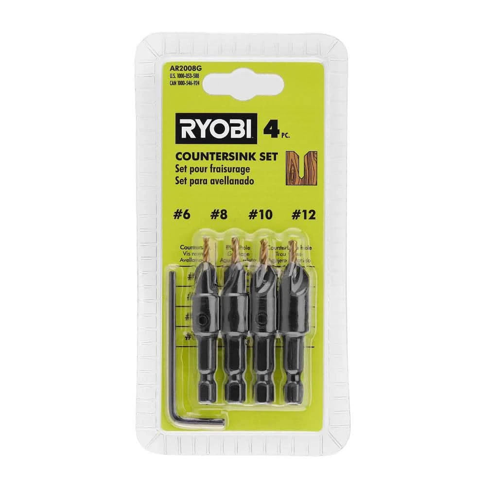 RYOBI introduces the SpeedLoad+ 5-Piece Power Groove Countersink Set. This set gives you what you need to set screws flush with or below the surface of a material. Use this set with the RYOBI 1/4 in. Hex Shank Speedload+ Chuck. The Power Groove Countersink Set (5-Piece) includes four countersinks and a hex wrench for changing or tightening the drill bit in each countersink.