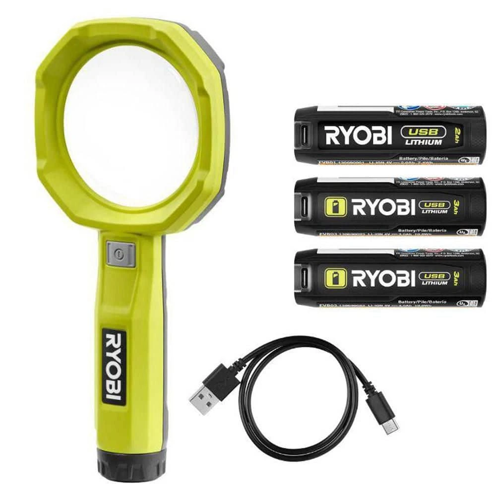 RYOBI introduces the USB Lithium 200 Lumens Magnifying Light Kit w/ 2.0 Ah Battery, Charging Cable, & USB Lithium 3.0 Ah Batteries (2-Pack). With 3X magnification you can be confident that you’ll have clear, precise visibility for the task or project at hand. 200 lumens with high and low brightness modes provide customizable lighting output in darker environments. It is the perfect solution for reading manuals, menus, and more. This magnifying light provides up to 16 hours of runtime and is the perfect solution to improve visibility anytime or anywhere. This kit includes a microfiber bag to protect and store the light when not in use. It can also be used to clean the magnifying lens. The USB Lithium LED Magnifying Light Kit is a part of the USB Lithium System that provides compact, portable, rechargeable solutions for cordless power and productivity. This USB Lithium LED Magnifying Light Kit is backed by the RYOBI 2-Year Manufacturer’s Warranty and includes (1) FVL55 LED Magnifying Light (1) USB Lithium 2.0 Ah Battery, (1) Microfiber Bag, USB Cable, USB Lithium 3.0 Ah Batteries (2-Pack), and Operator’s Manuals.