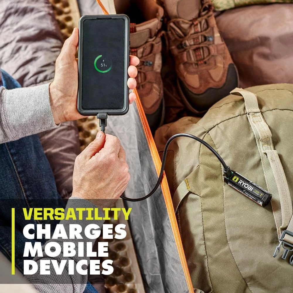 - Powers the RYOBI USB Lithium system for portability and minimal downtime