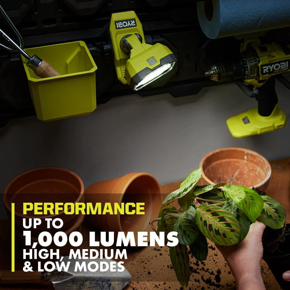 The RYOBI USB Lithium LED Magnetic Clamp Light Kit provides powerful illumination in a durable hands-free design. With up to 1,000 Lumens and 3 brightness modes, this light suits a variety of needs for any environment. Featuring a 360° rotating and 180° pivoting head, light up any workspace or environment with customizable lighting placement. Mount anywhere with 1-1/4